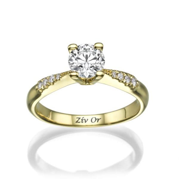 טבעת אירוסין יהלום צד המשובצת במרכזה ביהלום ובצידי הטבעת מעוטרת ב 8 יהלומי צד טוטאל של 0.08ct.