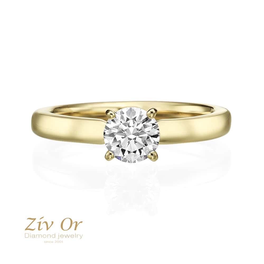 טבעת אירוסין קלאסית המשובצת במרכזה ביהלום.