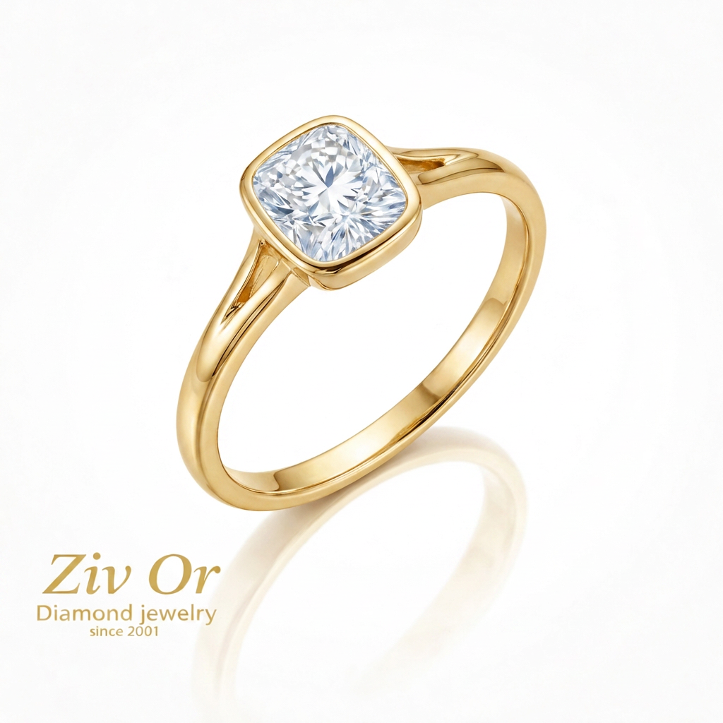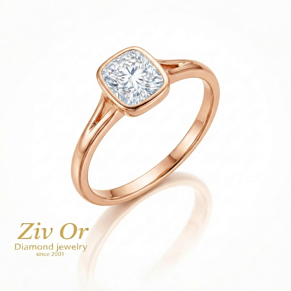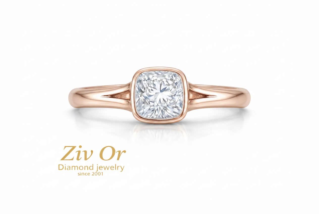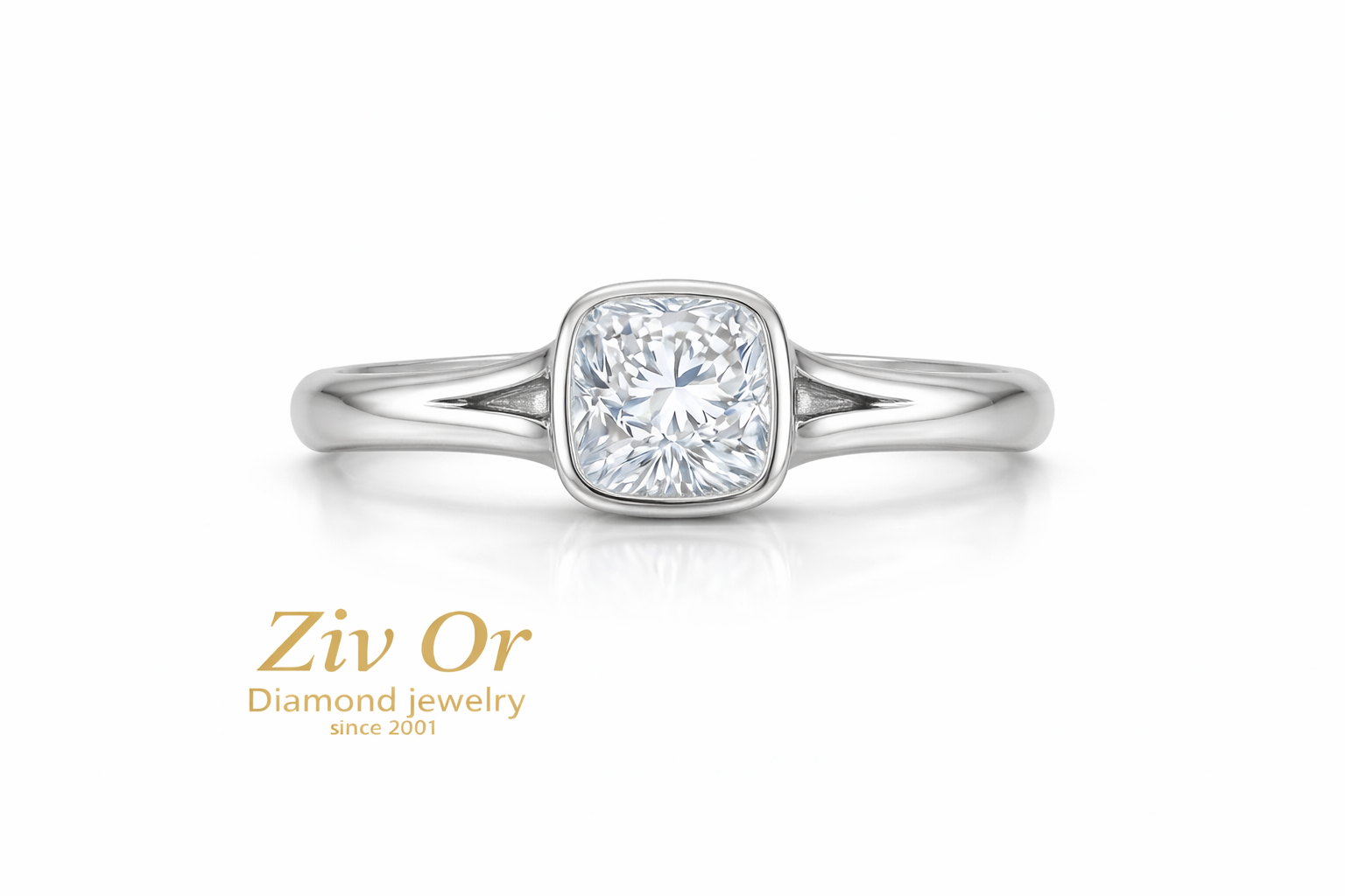 טבעת אירוסין מקסימה בחיתוך קושן במשקל כולל של 1.00ct