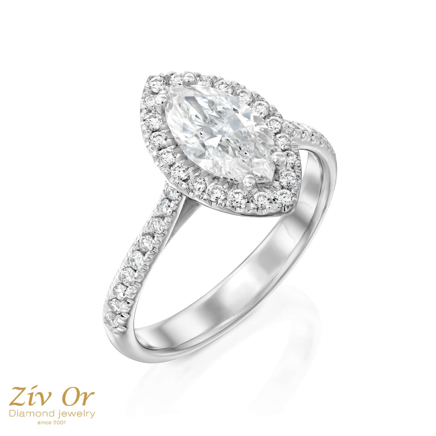 טבעת אירוסין בחיתוך מרקיזה עם יהלומי במשקל כולל של 1.07ct