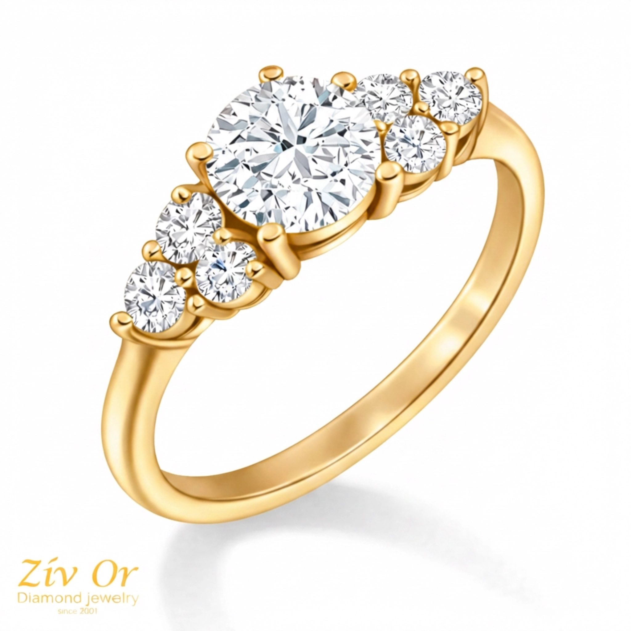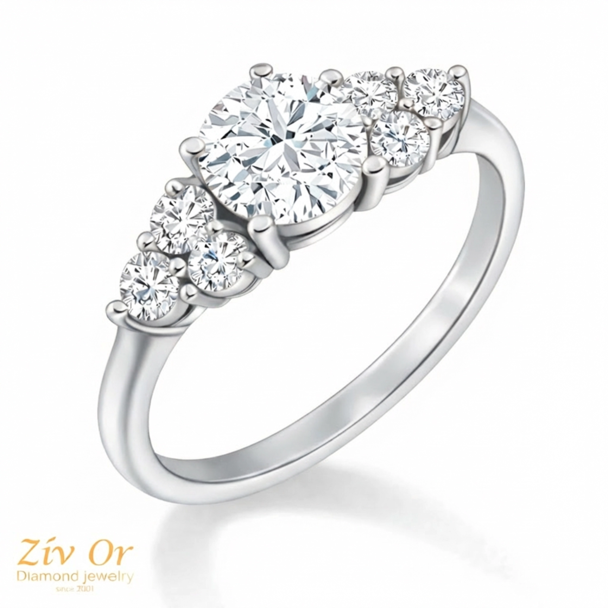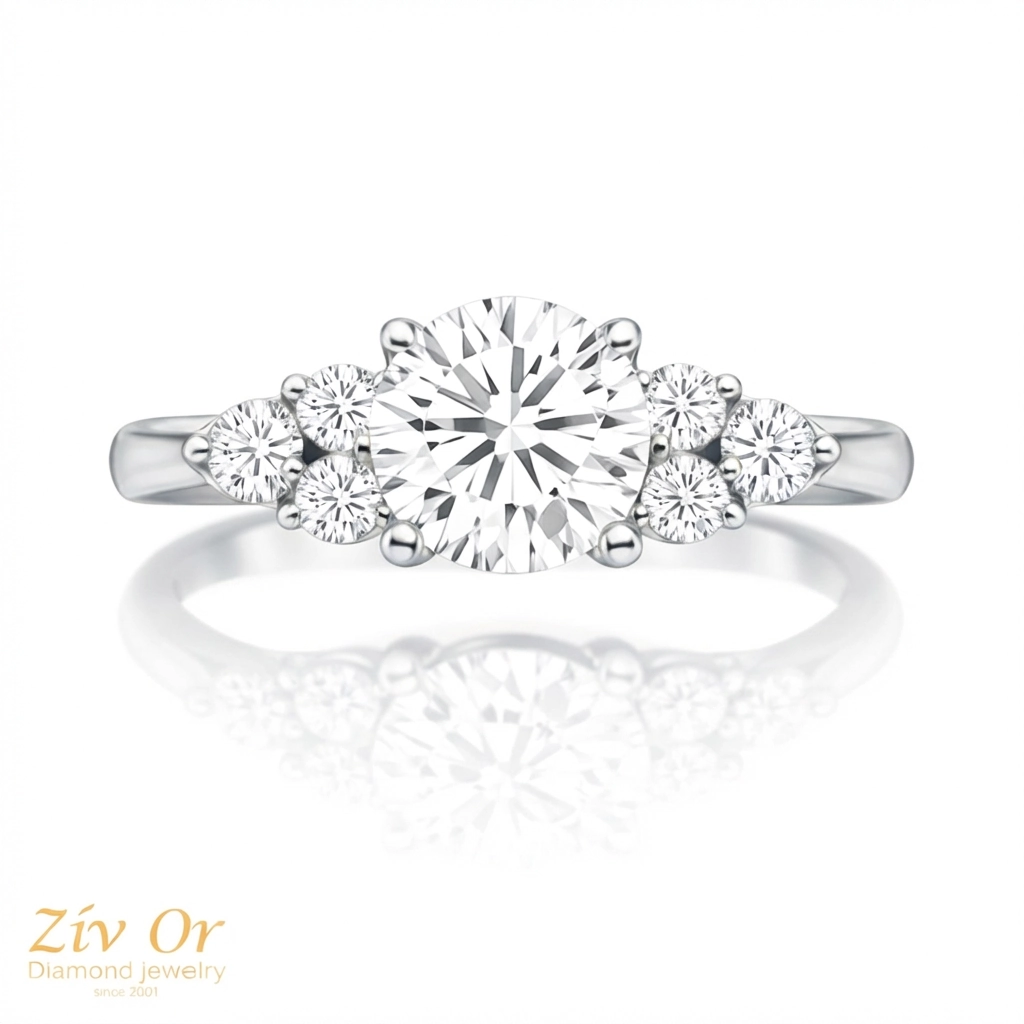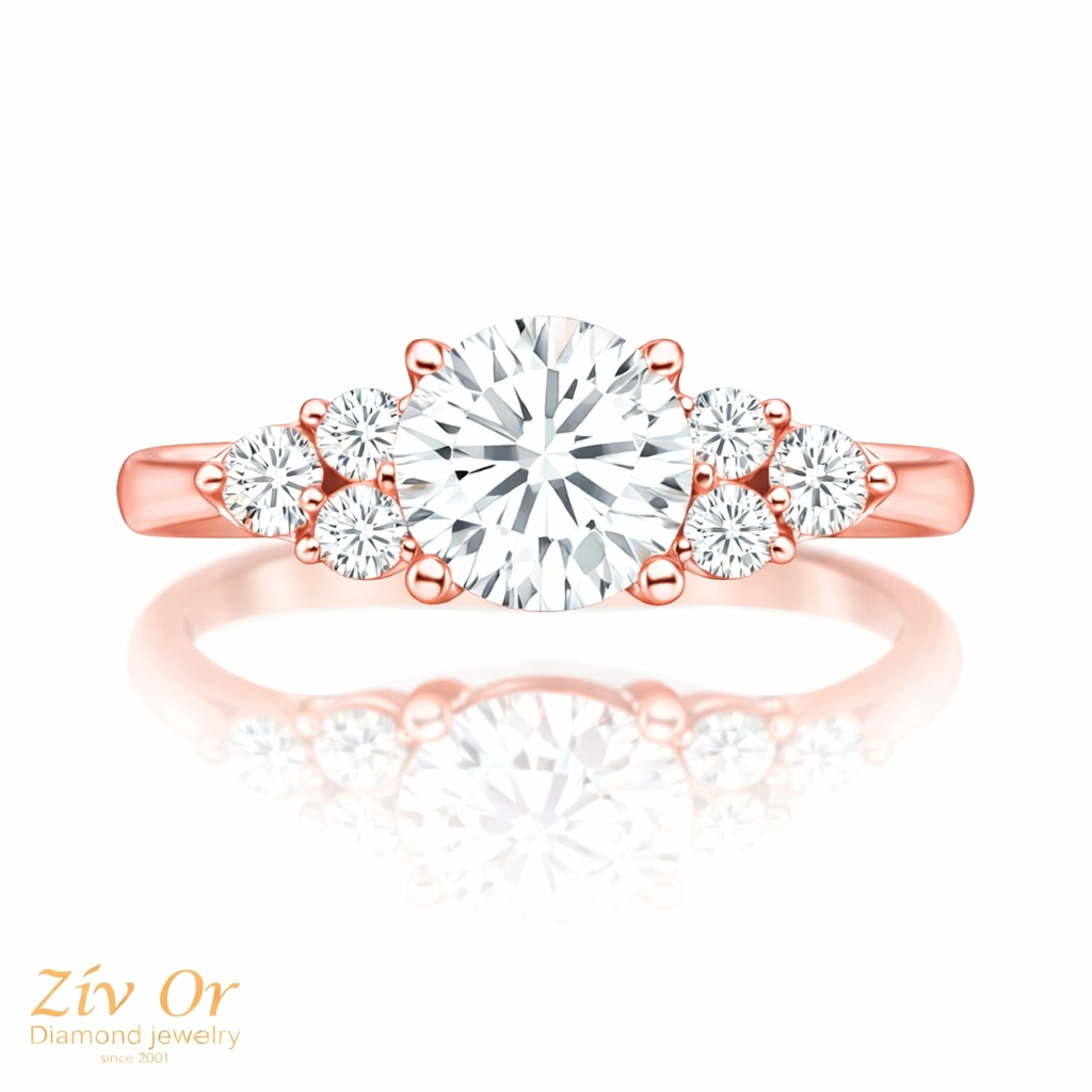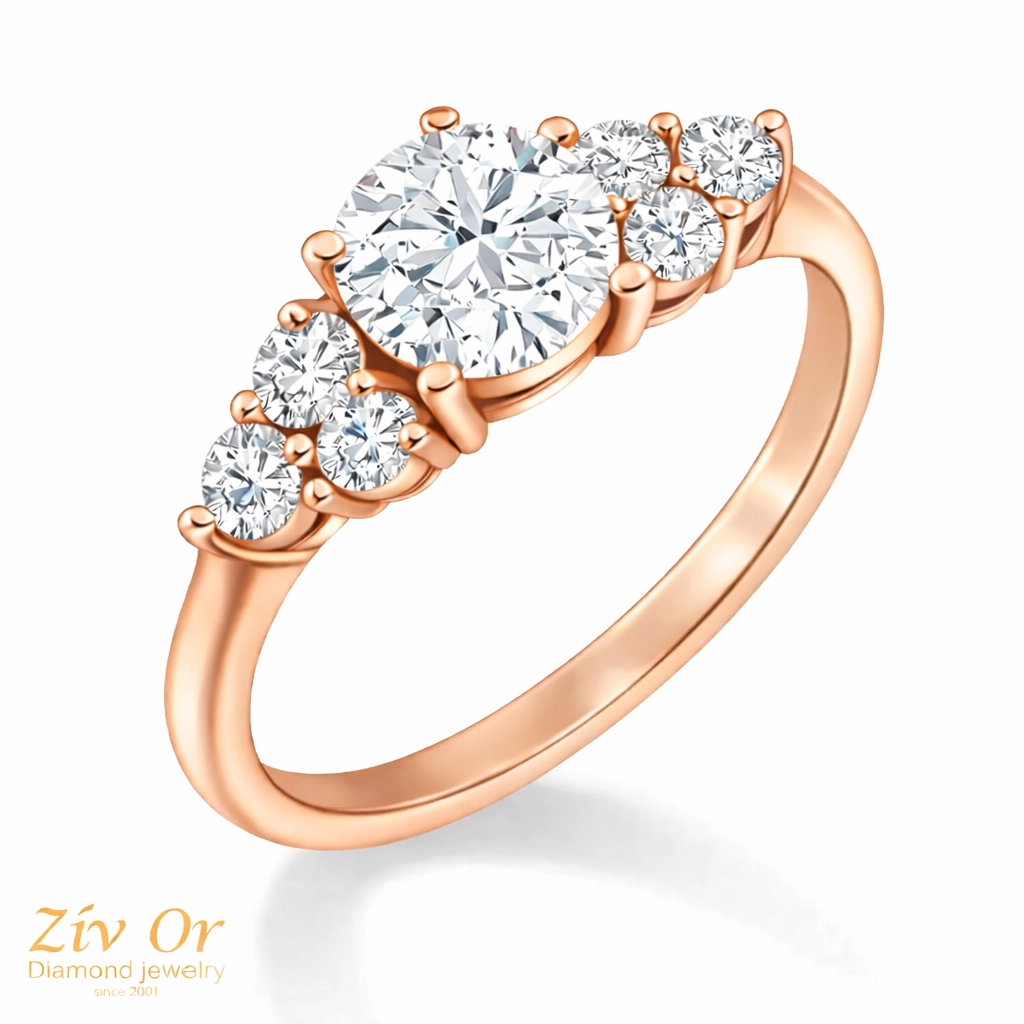 טבעת אירוסין מרשימה עם יהלומי צד  המשובצת  ב 6 יהלומי צד  .