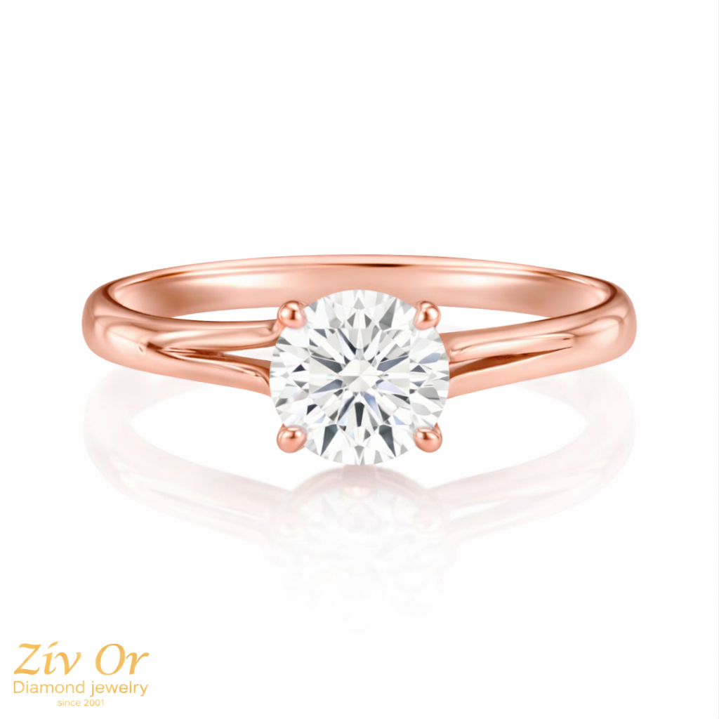 טבעת טוויסט מדהימה המשובצת במרכזה ביהלום.