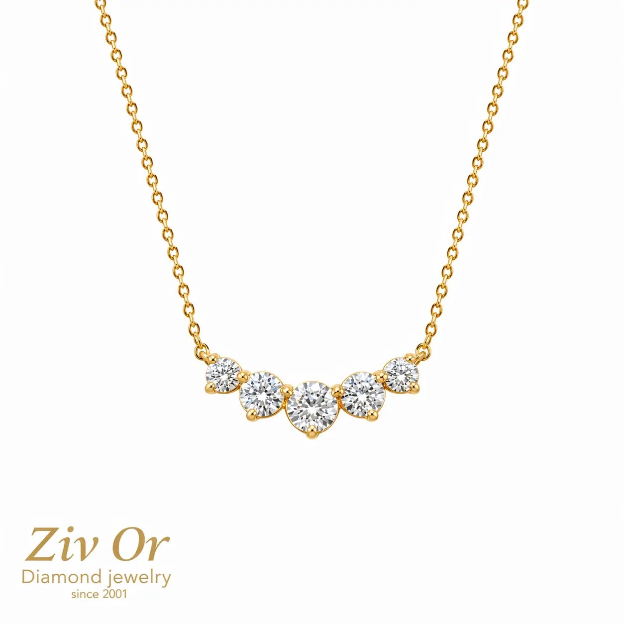 תליון יהלומים עדין ויפה המשובץ ב 5 יהלומים.